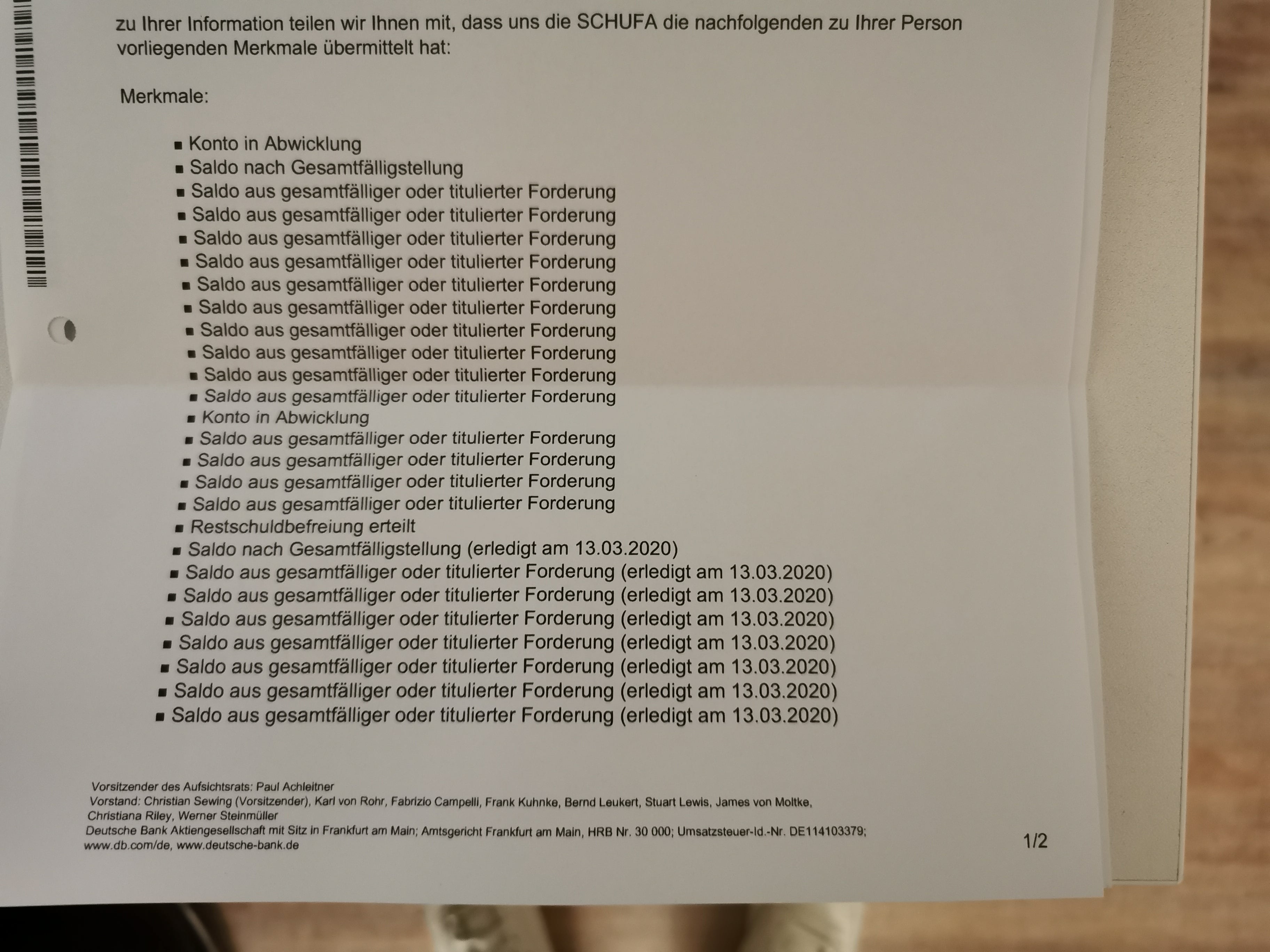 7) what data is collected by schufa in germany? So if someone, like your landlord or bank, is asking you to provide a schufa record, they check how trustworthy you are to pay. Use the branch locator on meinschufa.de to find where to do it. In an earlier post i had already described how you can request your score report from schufa. Regards mehdi 0049015257816799 to apply online, simply fill out this form and provide your details. Schufa is now also using bank statements. Postbank and volksbank branches will print your schufa report, even if you are not a customer. Schufa holding will review your past payment history, and forecasts your payment behaviour in the future in the form of figures (schufa score). If you call your bank to enquire about a loan, explicitly tell them you are making just an enquiry. You are most likely here because you have been asked to get a schufa report to rent an apartment in germany, or buying a car, or heard about credit score for applying for a credit card.so here is everything you wanted to know about schufa, and more! This should make it possible for customers to get term contracts, such as a mobile phone contract, even with an otherwise bad credit rating. The schufa holding ag is actually a private company tracking and keeping credit records in germany: Do you have any solution?