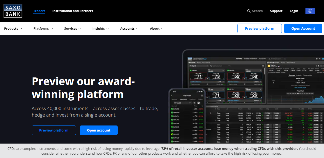 The saxo brand offers over 40,000 trading instruments in the asset classes of forex, stocks, commodities, etfs, futures, bonds and vanilla options.